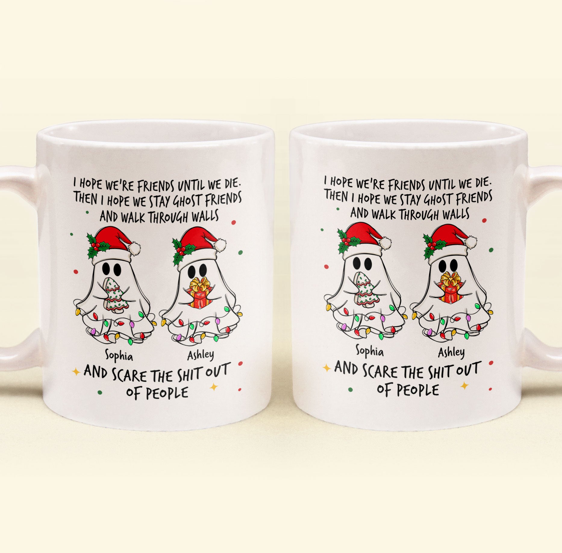 Celebrate the spooky and fun side of your friendship this Christmas with a unique and quirky mug designed for your best friend. Featuring an adorable holiday ghost theme and a hilarious quote about lifelong friendship, this mug is perfect for your partner-in-crime who’s always by your side. Whether you’re sharing laughs over coffee or enjoying cozy hot chocolate on a chilly winter night, this mug adds a touch of humor and warmth to your moments together. A thoughtful gift for friends who are more like family, this mug is sure to bring smiles and cherished memories every time it’s used!